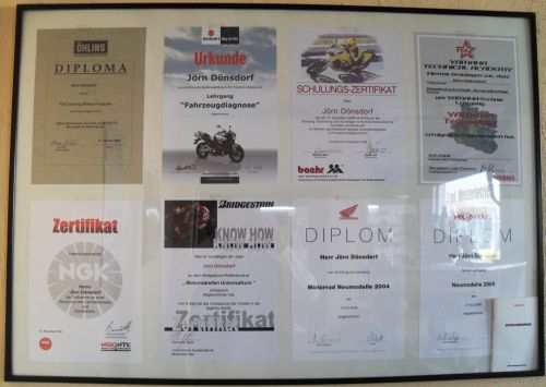 Wir sind für Sie da! Wenn Sie Fragen oder Probleme haben, können Sie jederzeit mit uns in Kontakt treten. Unsere Kontaktdaten: 2-rad Meisterbetrieb Albert-Einstein-Str.8 55435 Gau-Algesheim Tel: 01577-9363360 Fax: 06132-3824 E-Mail: 2rad-service@gmx.de Öffnungszeiten: Mo-Fr.: 9-13, 14-18 Uhr Sa.: 10-14 Uhr, sowie Termine nach Vereinbarung Werdegang Nachdem ich meine Ausbildung in einer Honda-Vertragswerkstatt absolviert hatte, ging ich an das Berufsbilungs- und Technologiezentrum Frankfurt. Im Jahr 2009 absolvierte ich dort meine Meisterprüfung. Noch im selben Jahr begann ich mit der Planung und der Eröffnung des 2-rad Meisterbetriebes Doensdorf in Gau-Algesheim. Hier lassen sich all meine Vorstellungen von persönlicher Kundenbetreuung, markenunabhängigem Service und individueller Geschäftsgestaltung umsetzen.
